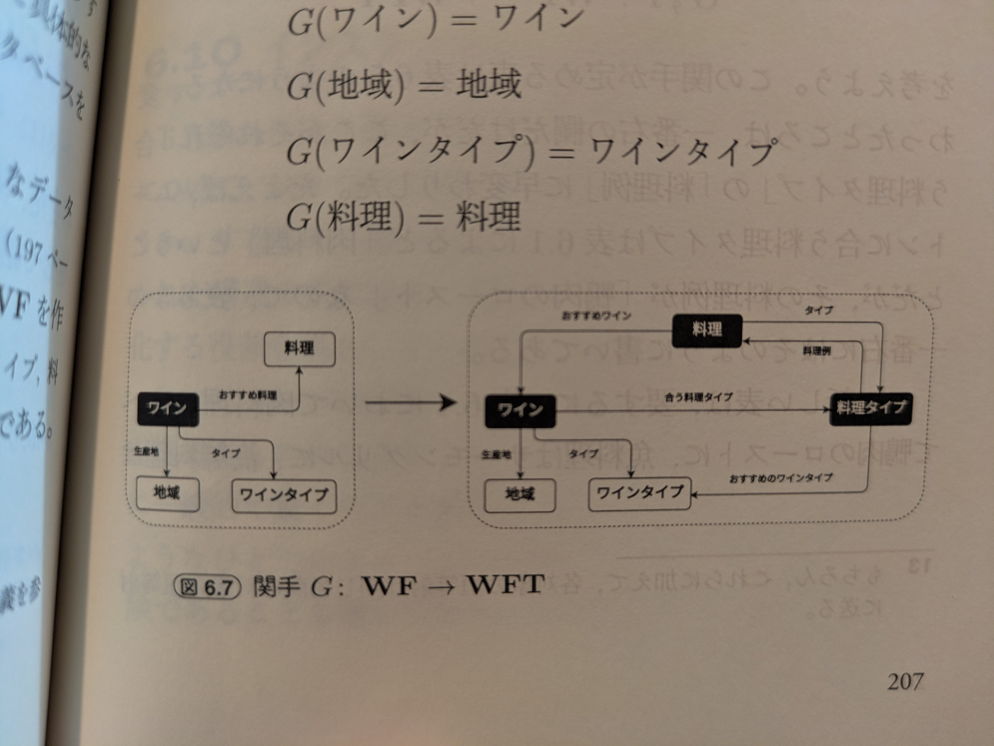 - 料理とワインのデータベース構造図式から作られた圏から、集合の圏への関手を与えることができる